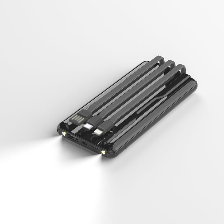 10,000mAh Power Bank With Built-In Charging Cables