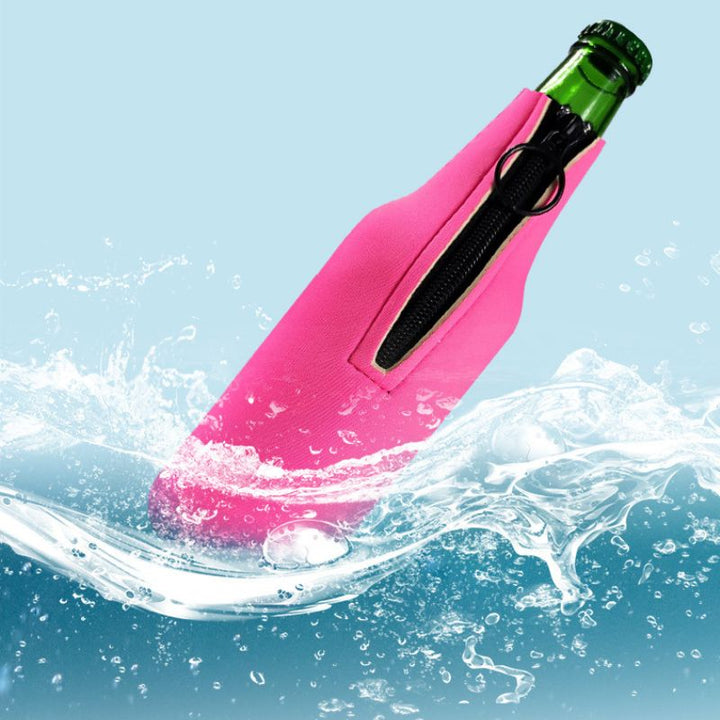 Cooler, Bottle, Neoprene, Sublimated, Custom, Logo, Promo, Drink, Cold, Stitching, Durable, Event, TradeShow, Giveaway, Restaurant, Branding, Imprint, Colorful, Insulated