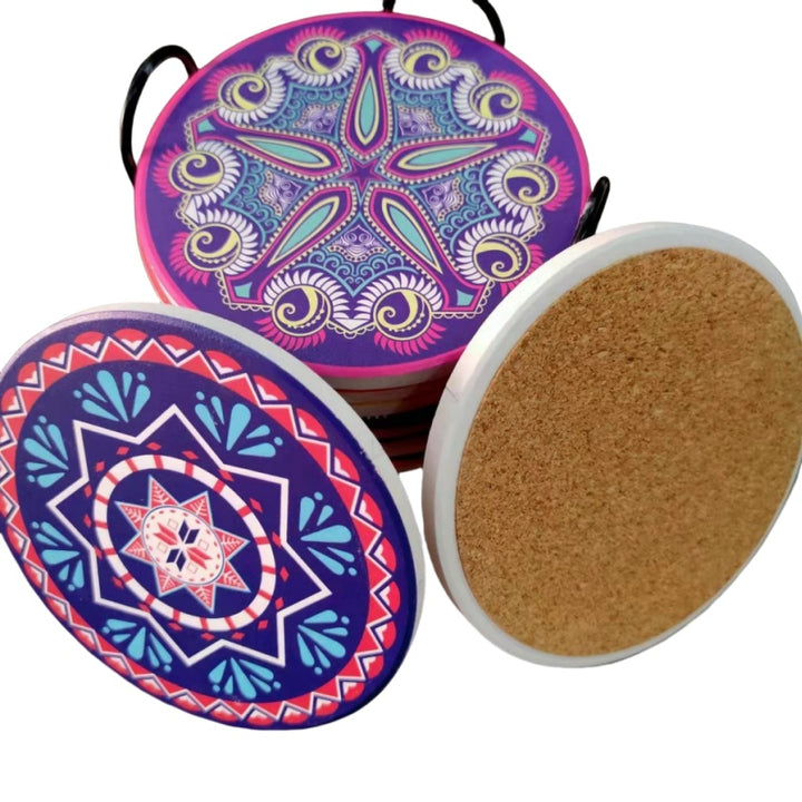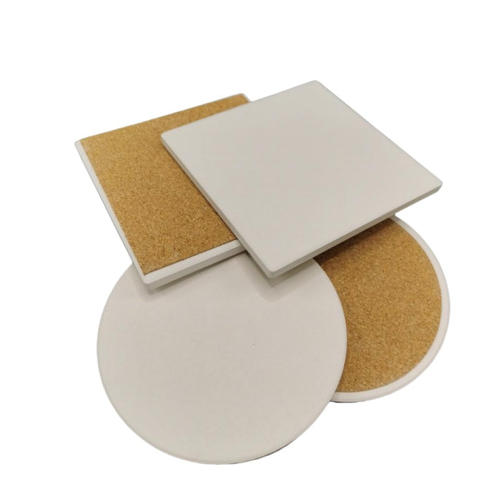 Ceramic Absorbent Coasters with Cork Base