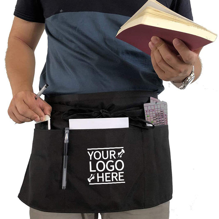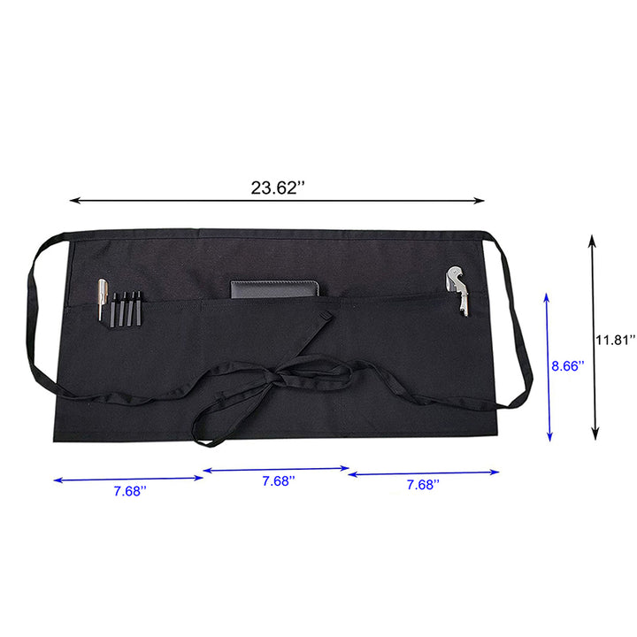 Coffee Shop Bar Server Waiter Waist Aprons with 3 Pockets
