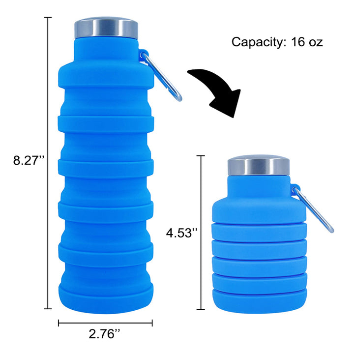 Durable 16oz. BPA Free Silicone Collapsible Water Bottle