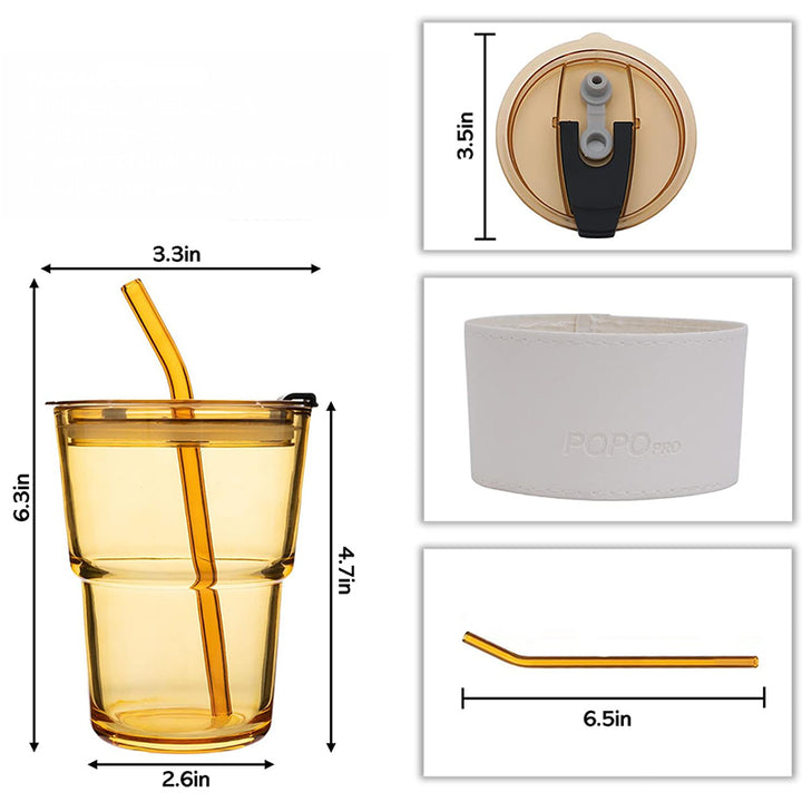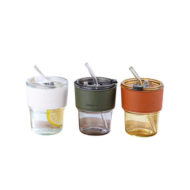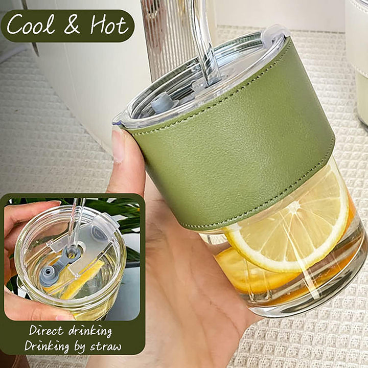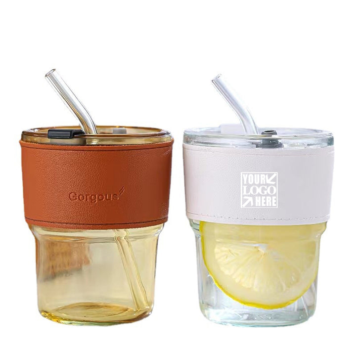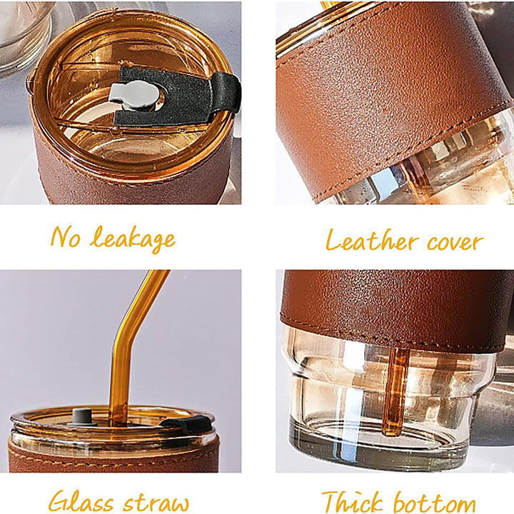 Portable Glass Cup with Straw and Leather Cover