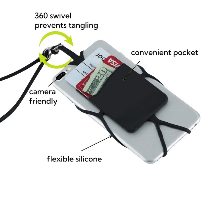 Silicone Cell Phone Holder Lanyard with Card Pocket